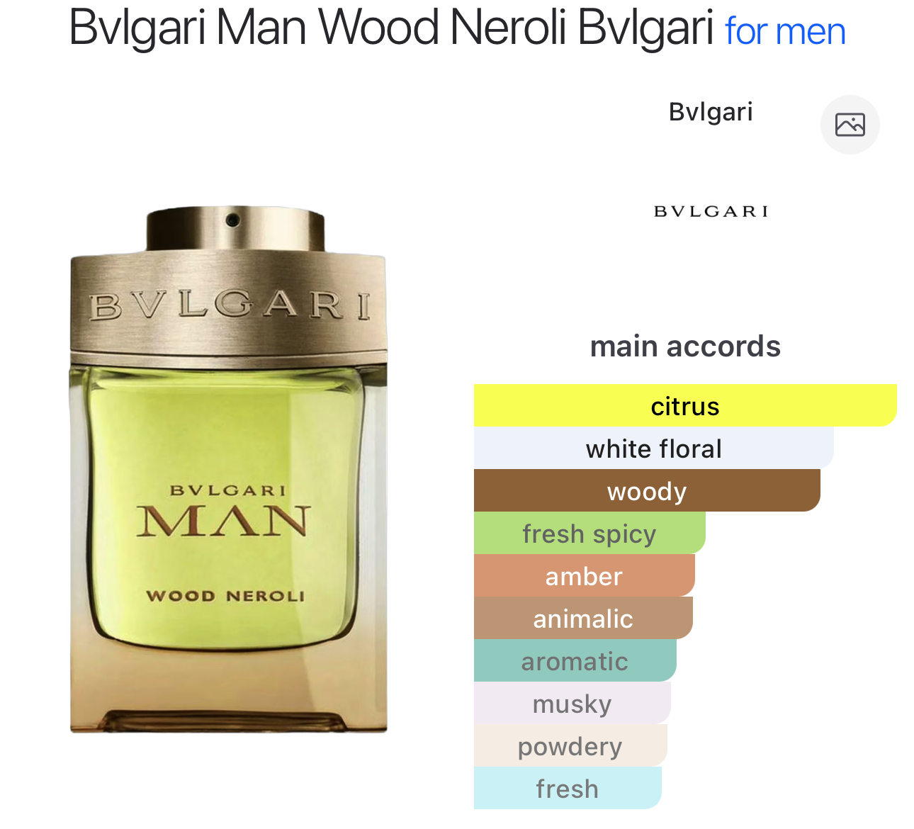 چارت آکوردی عطر بولگاری من وود نرولی
